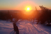 The course runs through beautiful wintry national park scenery on snow. The route consists of snowmobile service tracks, husky safari routes and other service routes much alike singletrack trails, but on snow. There are a couple of minimal road sections. The outdoor temperature during the event can be anything from about +5C to -30C.